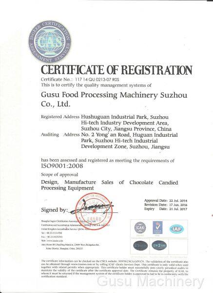 Gusu Food Processing Machinery Suzhou Co.,Ltd., ранее известная как Gusu General Works of Food Processing Machinery Suzhou, основана в 1969 году. Она также является первой предприятием, производящим полные комплекты шоколадной техники в Китае, и получила звание «Мать шоколада в Китае».